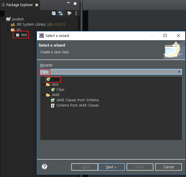 src에서 Ctrl - N 누르고 Package 입력 후 Next