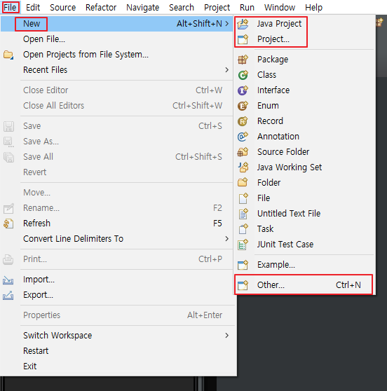 - File - New - Java Project