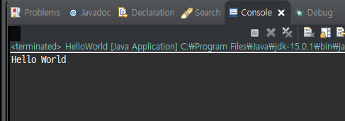 하단 Console 창에 Hello World가 출력된걸 확인할 수 있습니다.