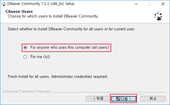 모든 유저가 사용할 수 있도록 For anyone ... 체크 후 다음