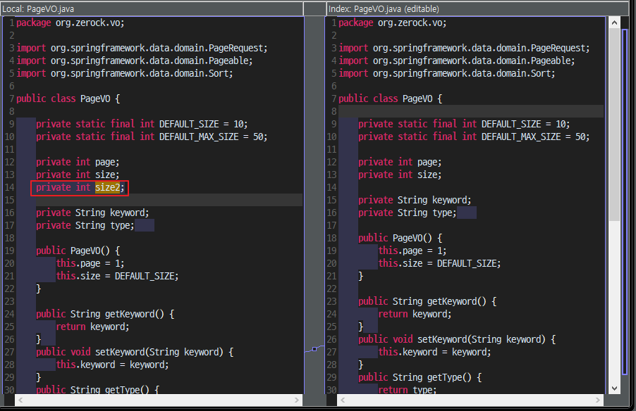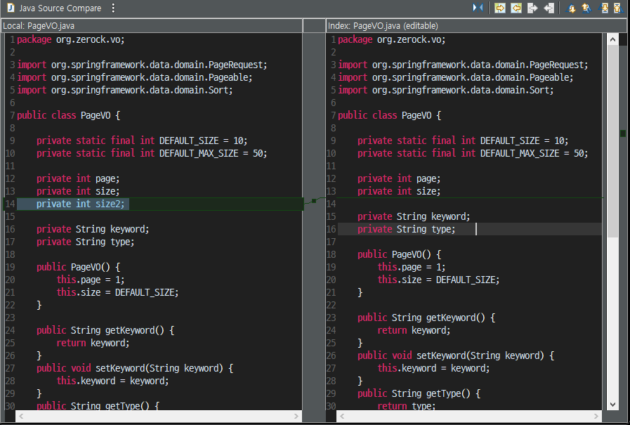 다시 아까 수정한 파일의 Compare를 열어봅니다.