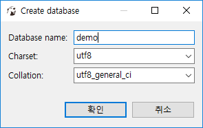 Database name 입력 후 확인(demo)
