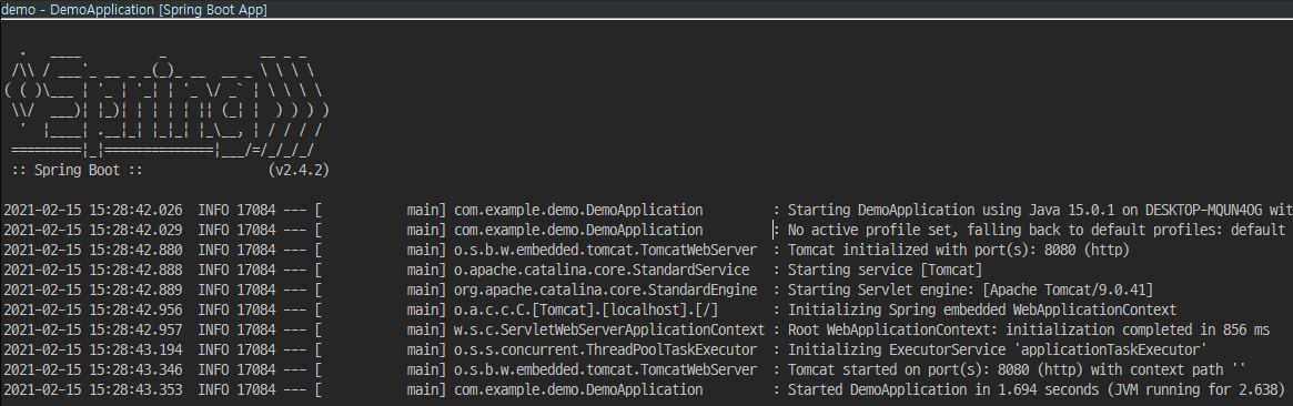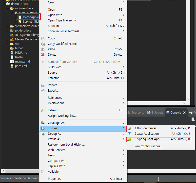 DemoApplication 우클릭 - Run as - Spring Boot App