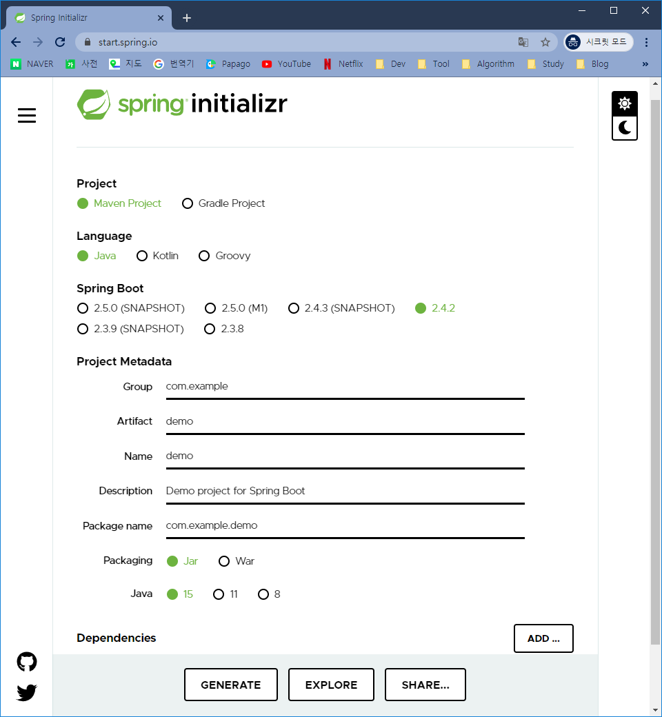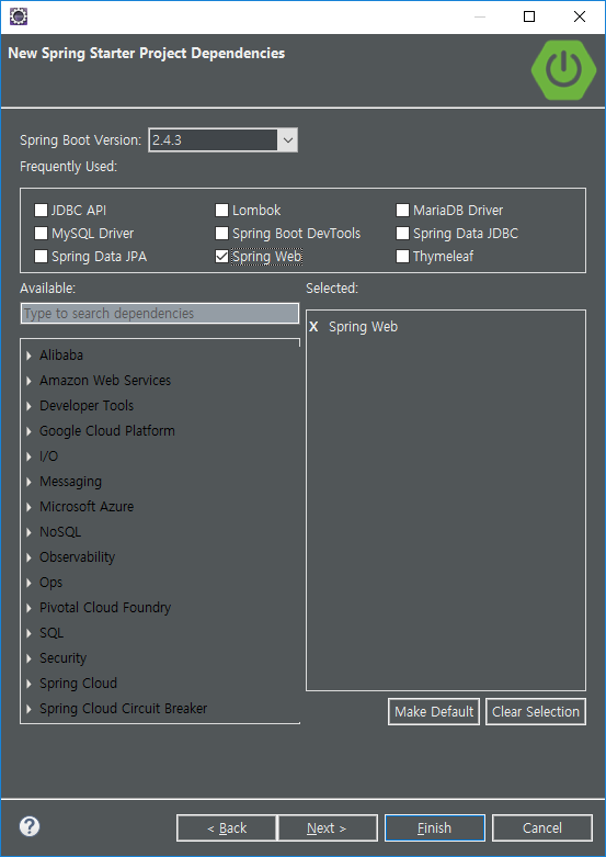 (아래 테스트만 진행한다면 Spring Web만 추가)