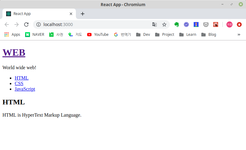 이전에 만들었던 화면에서 WEB 이나 HTML, CSS, JavaScript 를 클릭하면