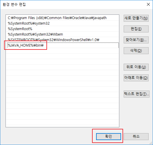 - %JAVA_HOME%\bin\ <= 입력 후 확인