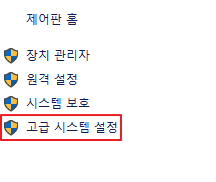- 윈도우키 - 내 PC 우클릭 - 속성 - 고급 시스템 설정