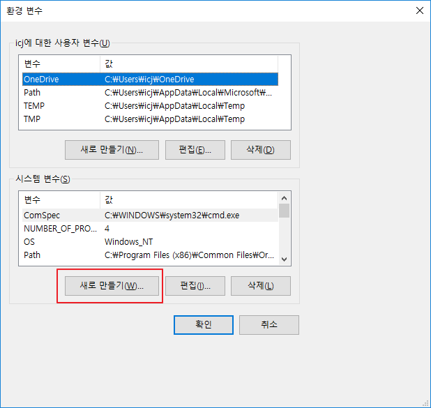 - 시스템 변수에 새로 만들기 선택