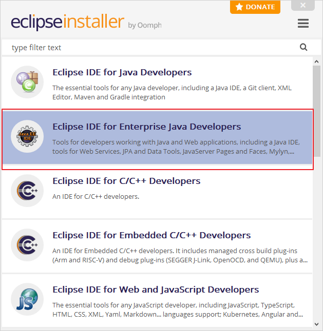 - Eclipse IDE for Enterprise Java Developers 클릭