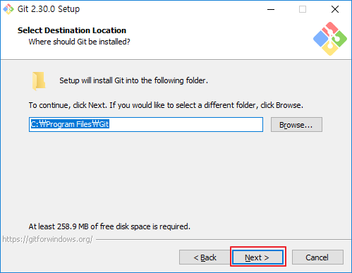 - 설치 받고 싶은 곳을 지정 후 Next 클릭