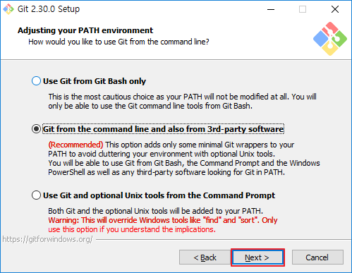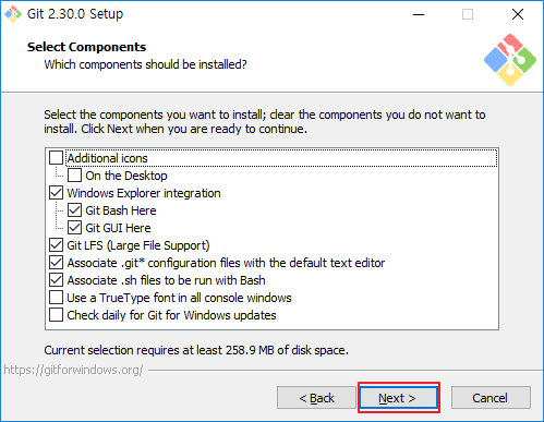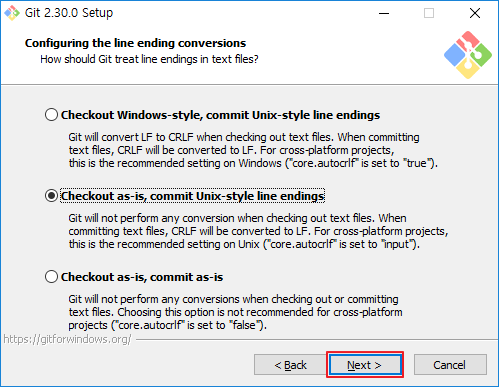 - 원하는 체크아웃, 커밋 엔딩 선택후 Next