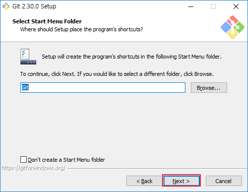 - Next (시작 메뉴에 추가하지 않으려면 Don't create a Start Menu folder 체크)