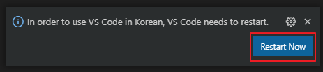 - 설치가 완료되면 우측 하단에 Restart Now 버튼 클릭