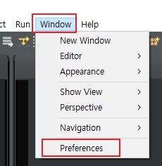 상단 메뉴의 Window - Preferences