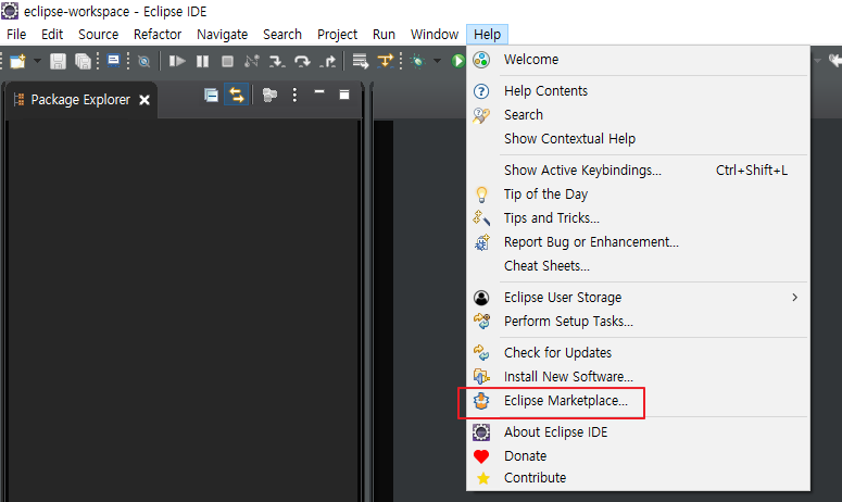 상단 메뉴의 Help - Eclipse Marketplace... 클릭