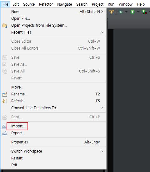 상단 메뉴의 File - Import... 클릭