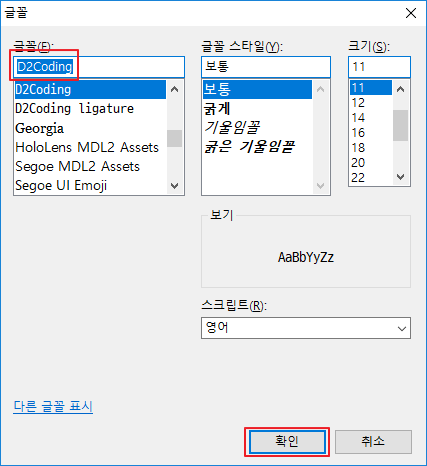 D2Coding 입력 후 확인