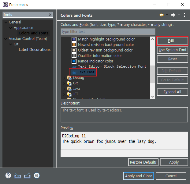 해당 폰트를 Eclipse에 적용시켜 보겠습니다.