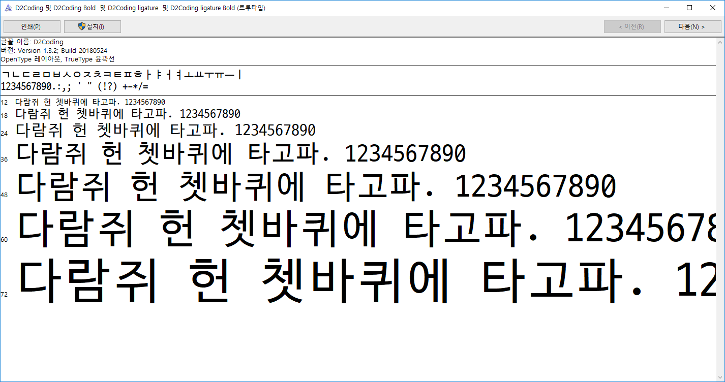 D2CodingAll - D2Coding-Ver1.3.2-20180524-all 열기